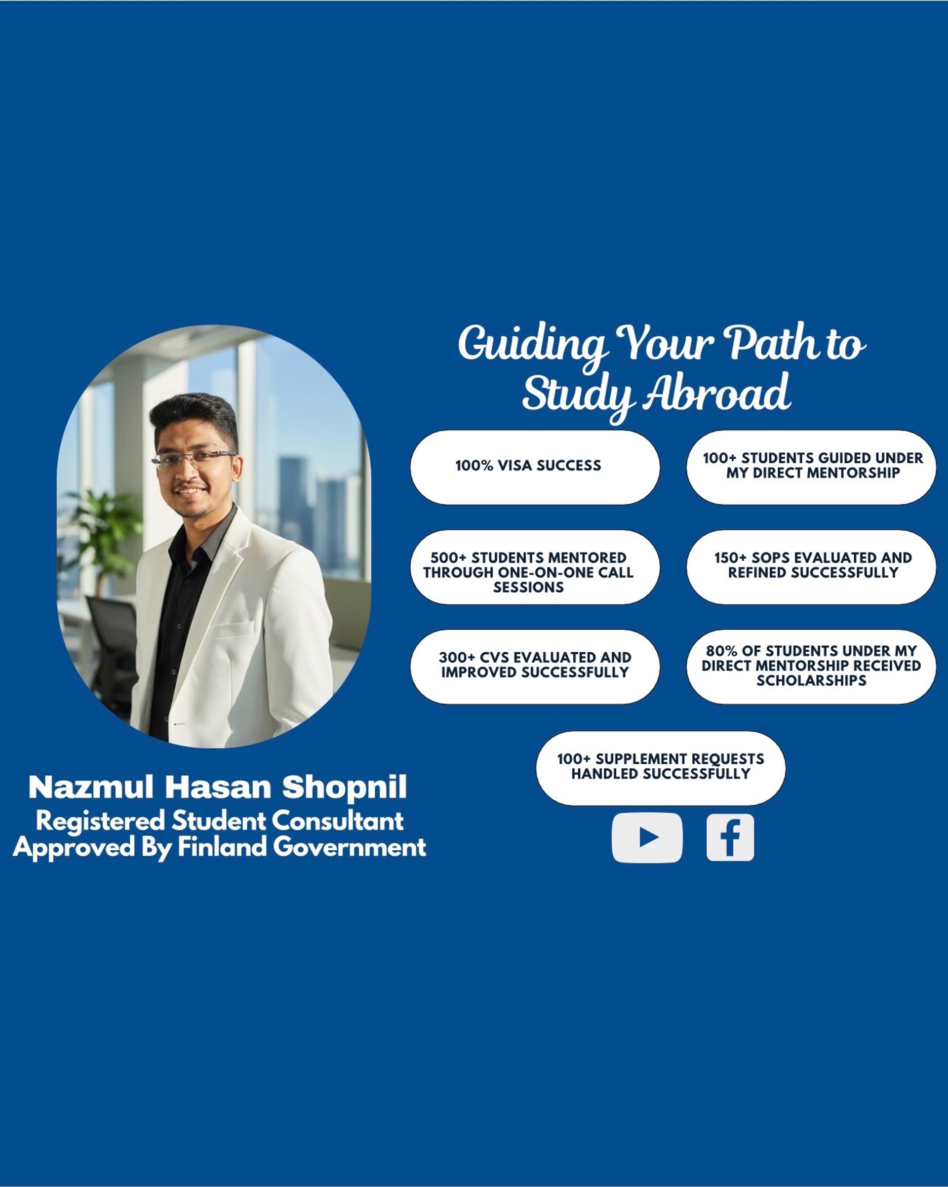 In this service, I will assist you every step of the way — from admission to visa — ensuring a smooth and successful application process.